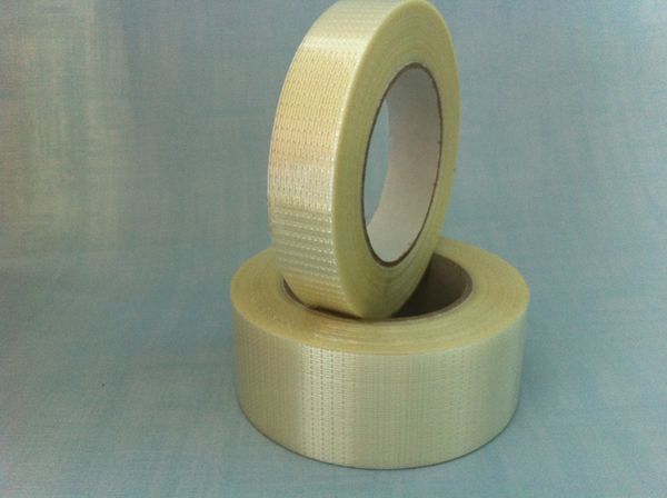 Very strong reinforced glass fibre mesh 1910 cross weave tape is based on a BOPP film reinforced with glass fibre mesh and coated on one side with a hot melt synthetic rubber resin adhesive. This high strength tape is used for strapping, bundling and palletising applications. For more information please refer to the technical specification pdf sheet.